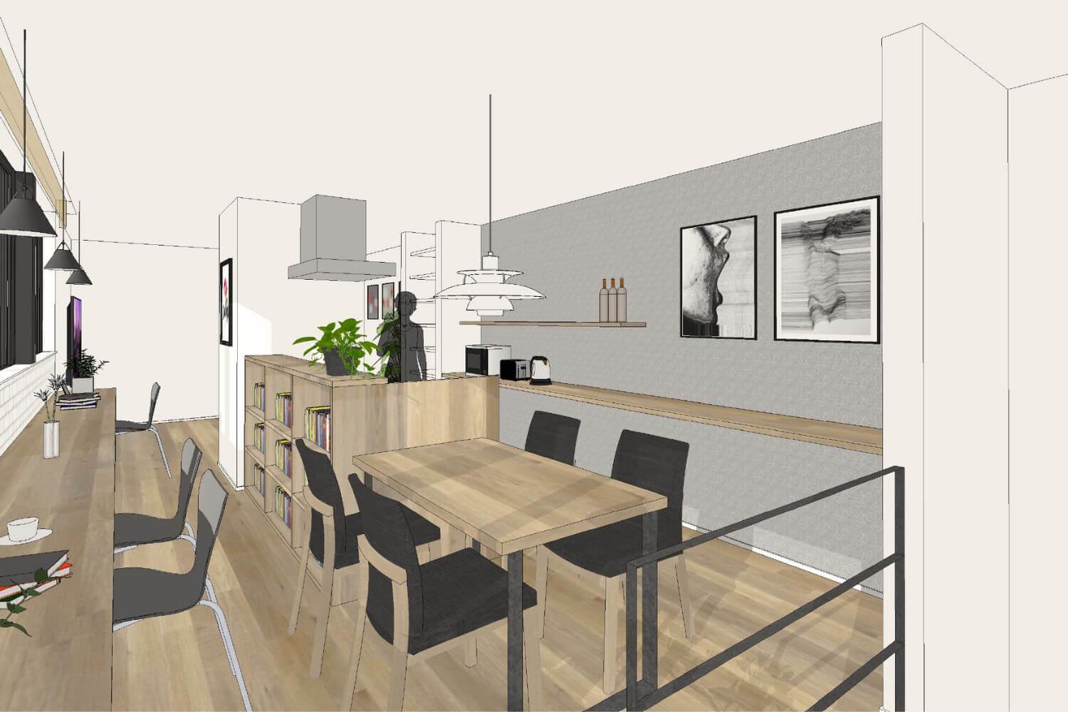 POINT 01.無垢材×カフェキッチンの心地よい空間