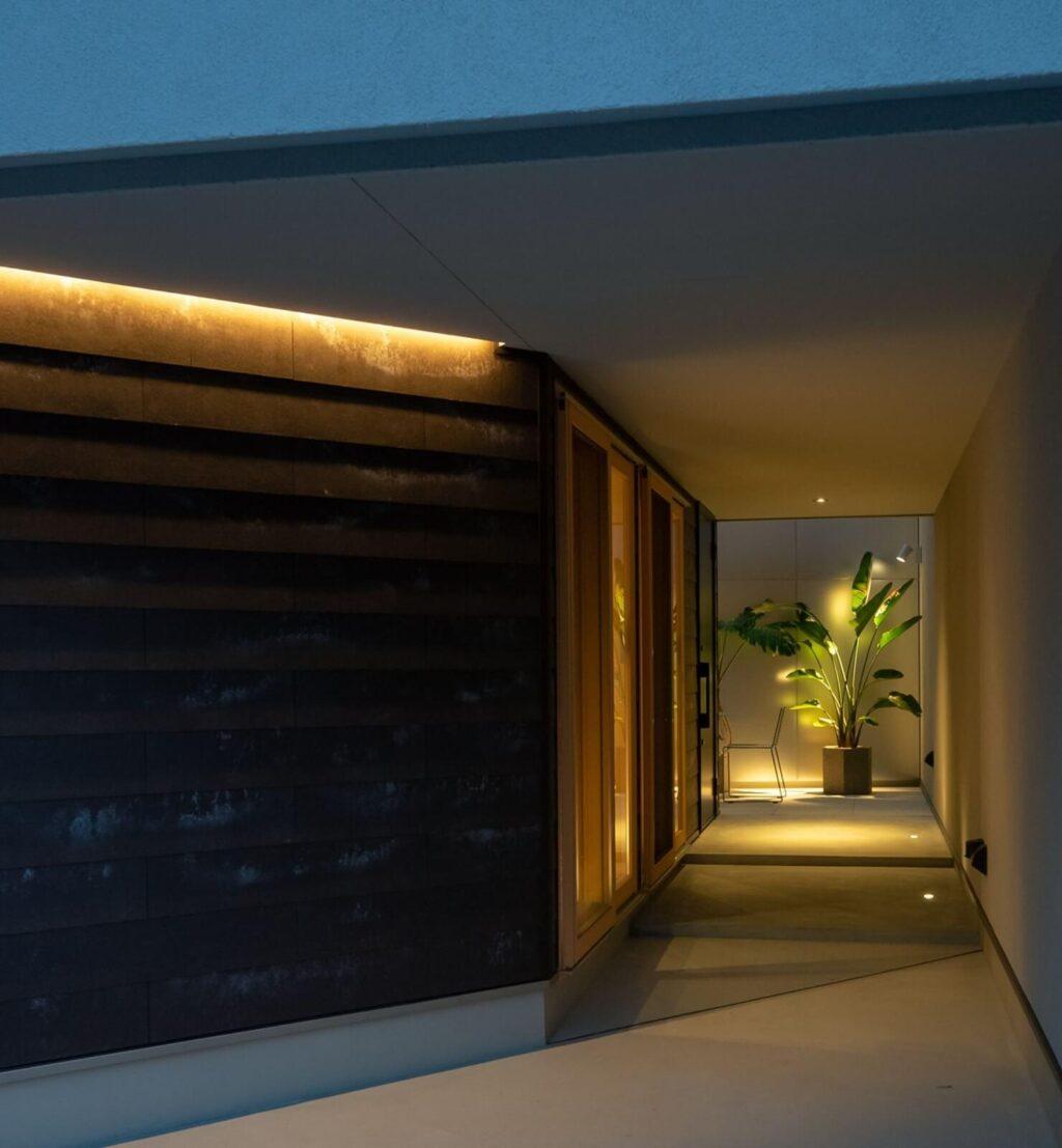 静かでやさしい夜の空気に包まれたモデルハウス。