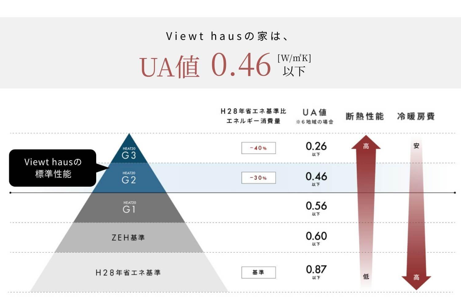 Viewt hausでは、HEAT20 G2以上の高い断熱性能を標準仕様に。