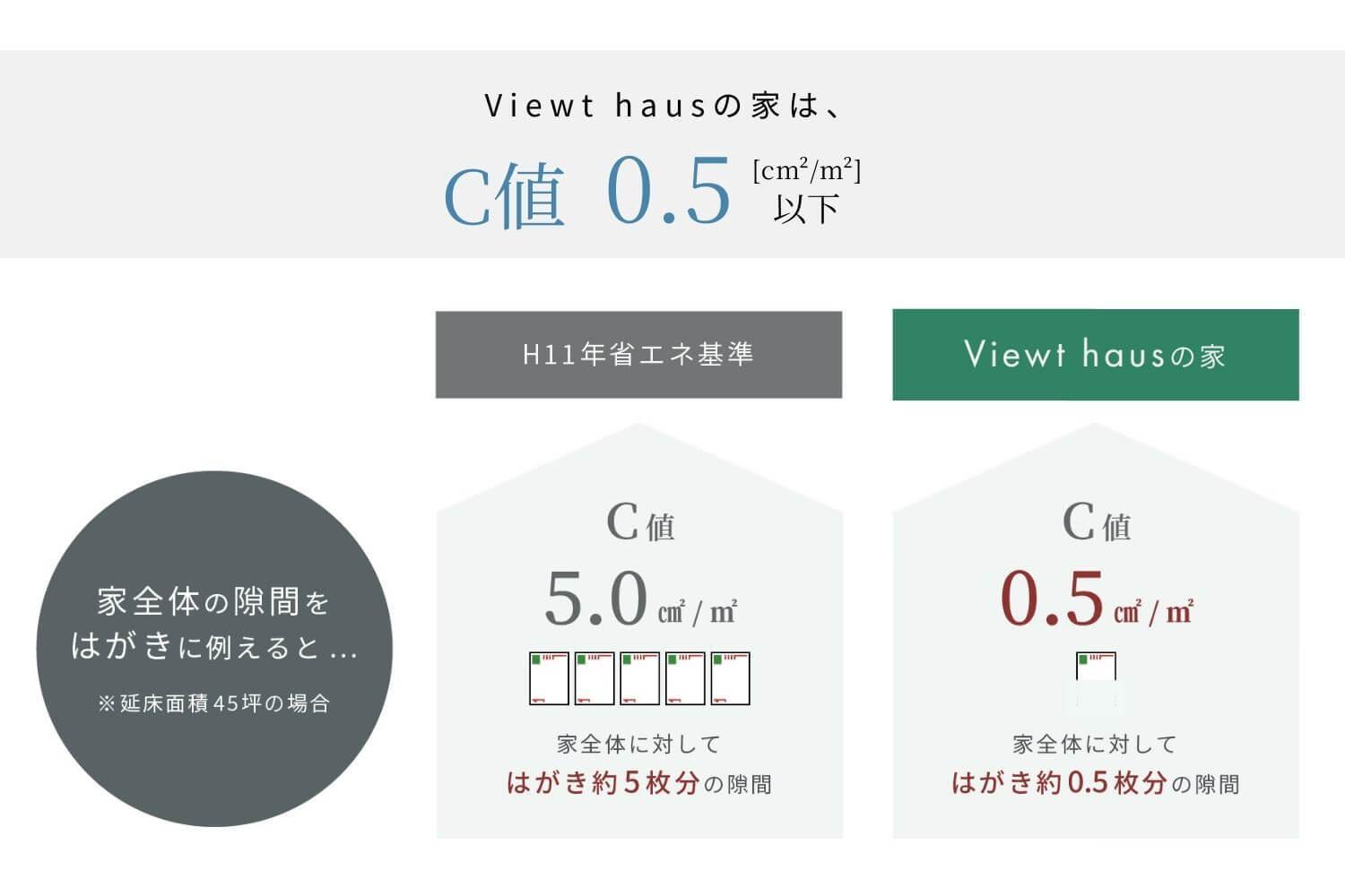 C値(隙間相当面積)が小さいほど、熱が逃げにくく、快適さが持続します。