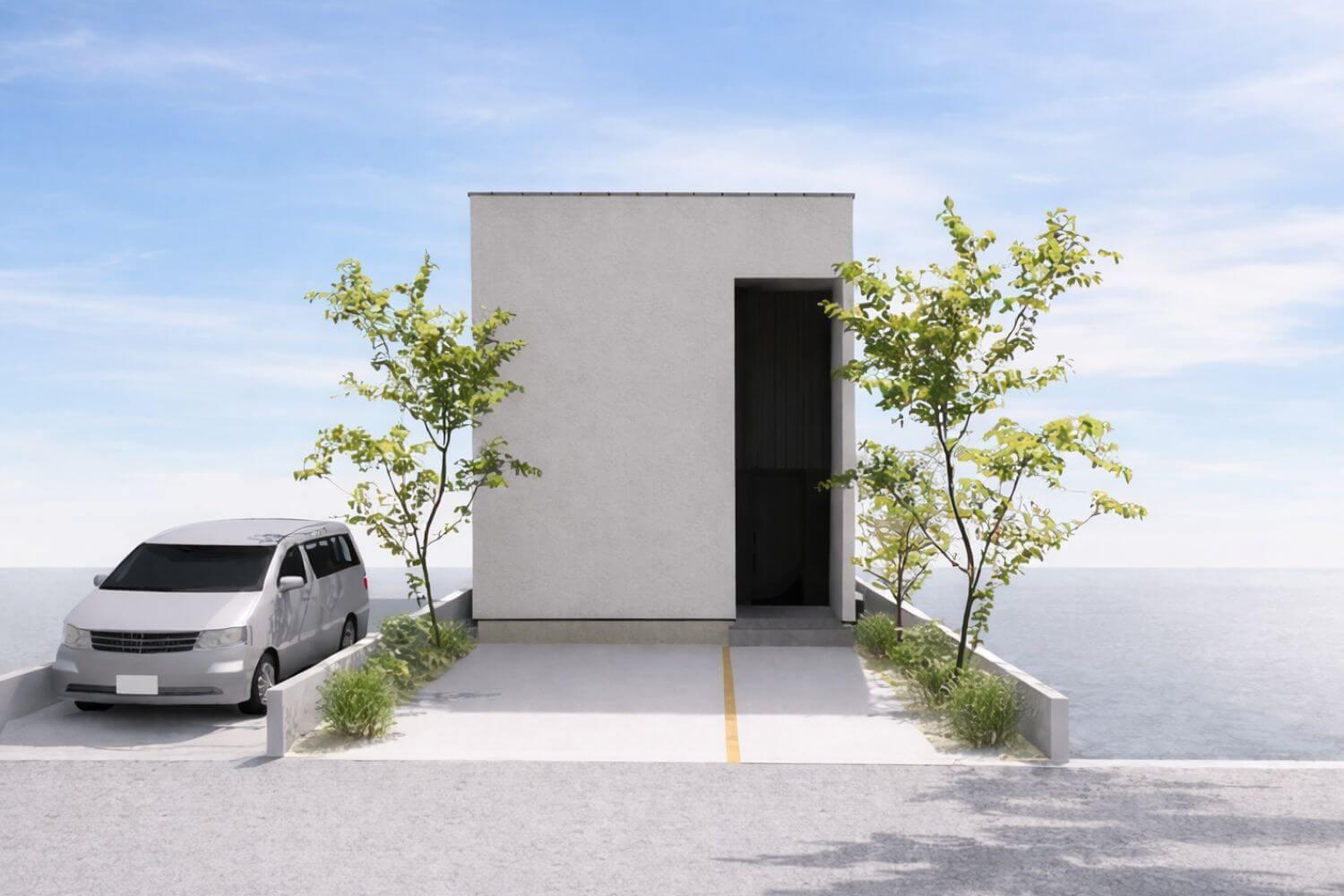 住宅密集地の中で、外からの視線を抑えたシンプルな外観。
